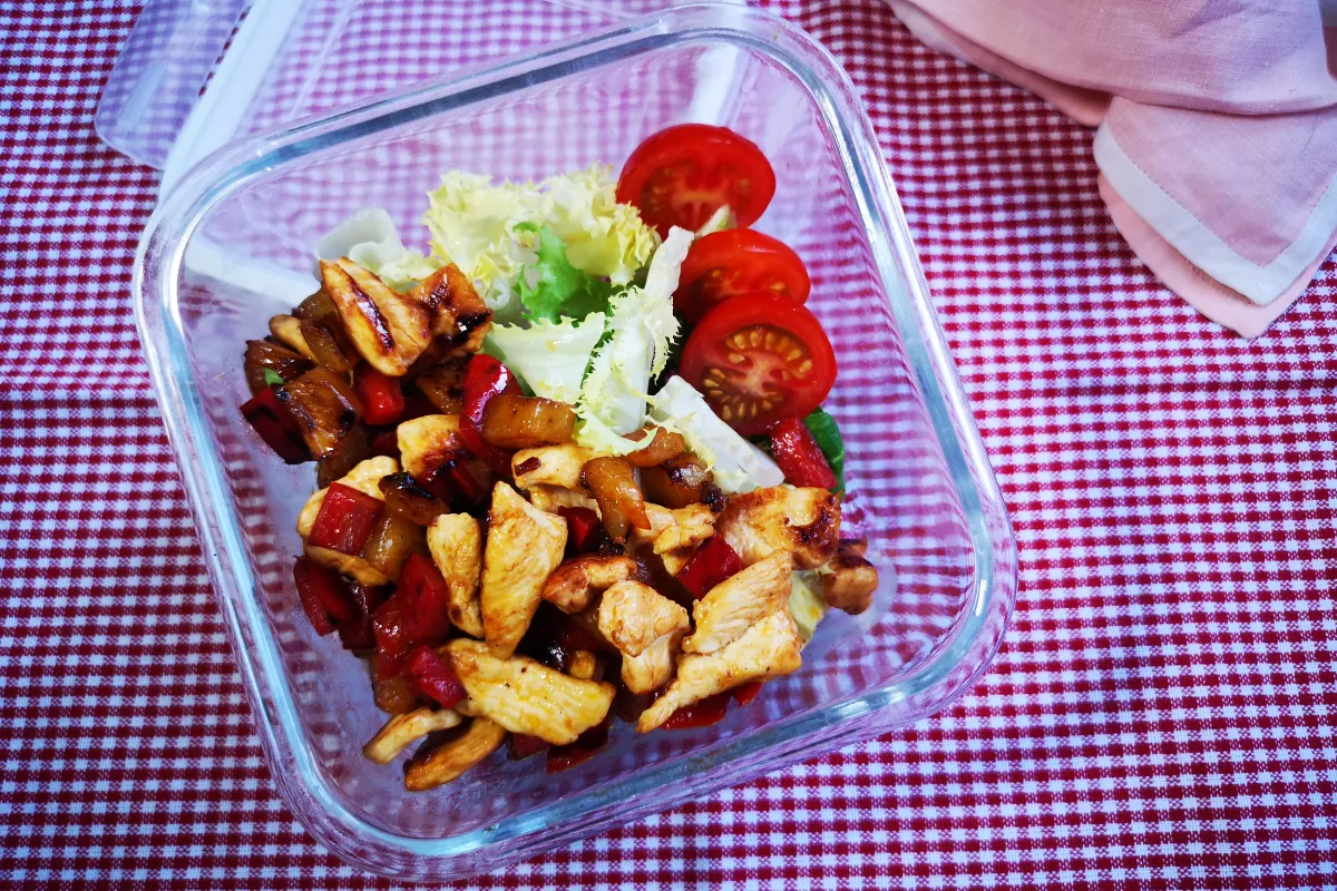 7. Una vez hechas la brochetas de pollo y piña emplatamos junto con una ensalada.